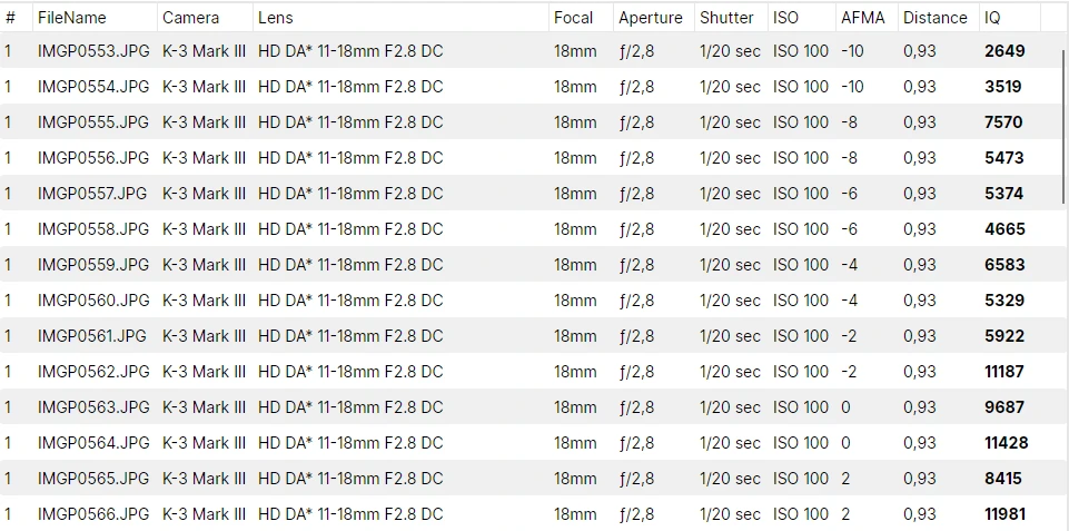 On paper, this sounds really cool, but in practice, it's not a trivial task! My Pentax camera has a setting that ranges from -10 to +10, allowing the focus to shift forward or backward. The calibration process involves finding the optimal value that produces the best focus precision and sharpness, and this needs to be consistent from image to image.