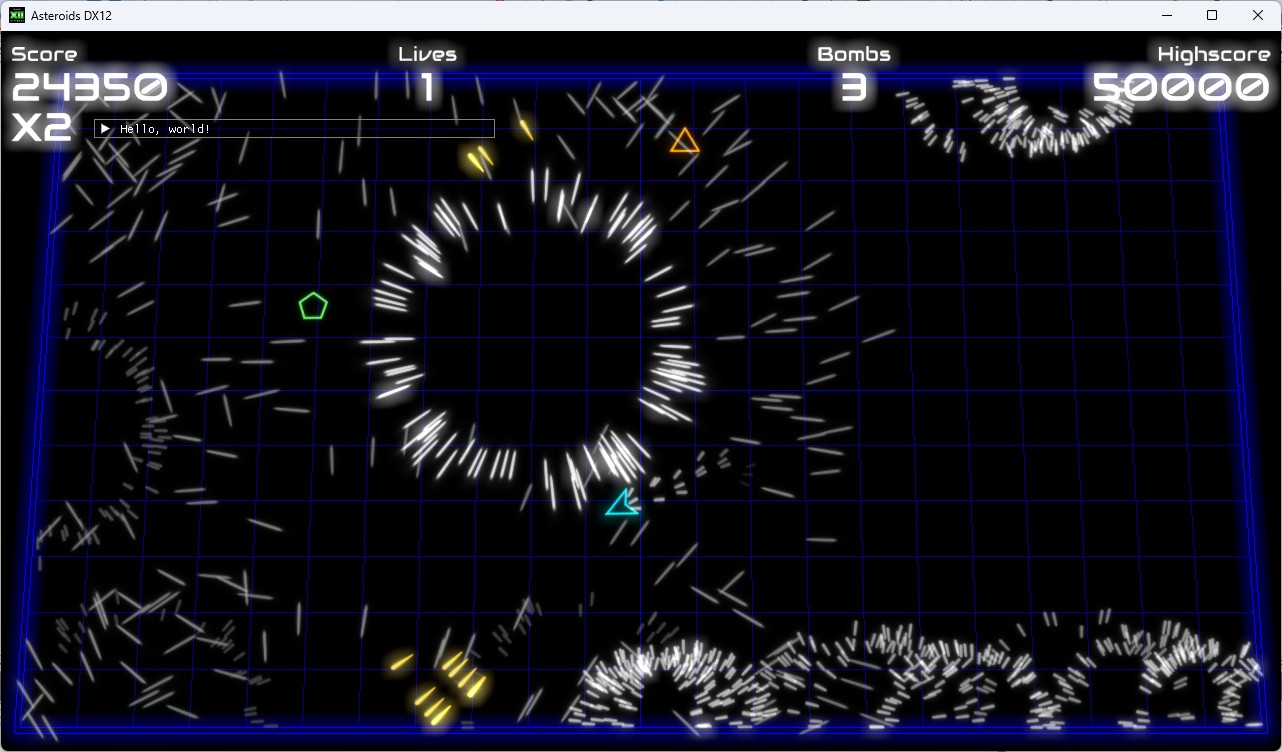 To put my engine and ECS to the test, I am writing a Geometry Wars-inspired arcade shooter. The game features enemies with steering behaviors and particle effects, built using custom systems. It serves as a real-world example to learn using ECS for gameplay.